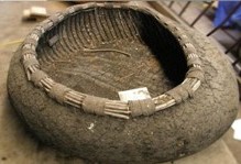 Varrott hajó építése, mai rajz                           Restaurált varrott hajó, erős hossztartó